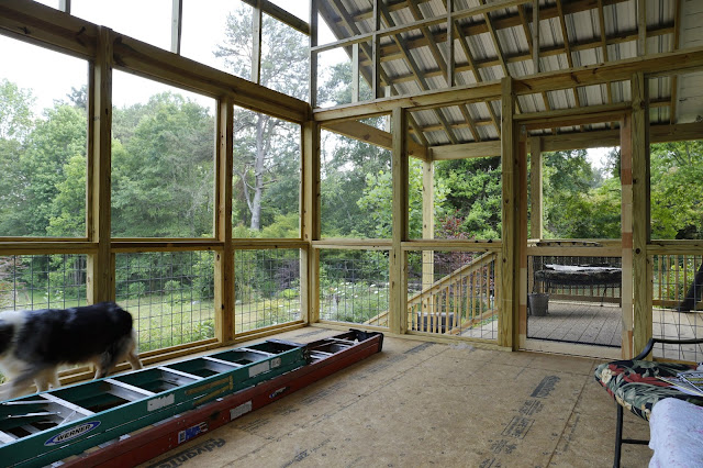 We are making real progress on the new porch. The wiring is being done as I write this and I am glad. We are needing a fan out there...and lights..